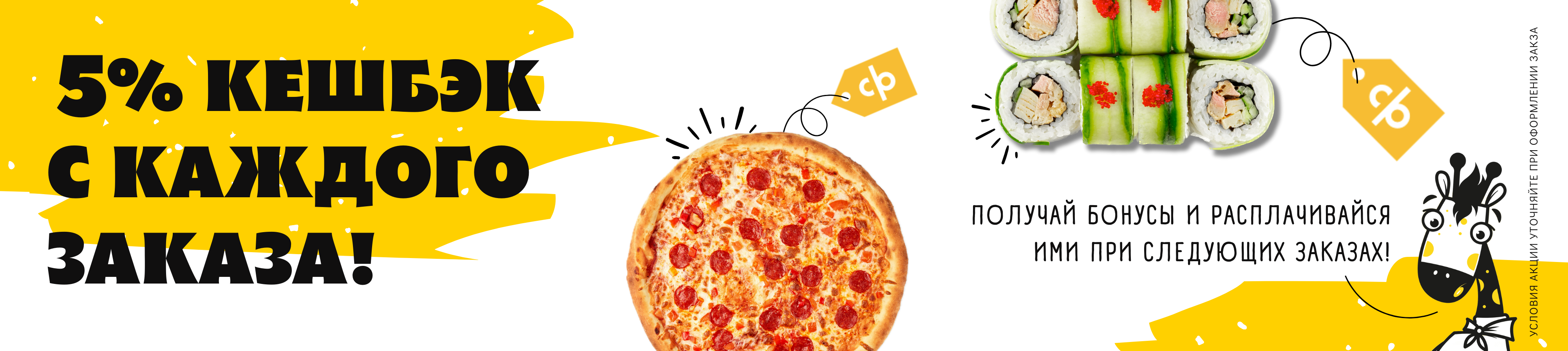 Запеченный ролл “Чикаго”, Запеченный ролл “Татами”, пицца “Ветчина и Грибы" и маки ролл с Тамаго