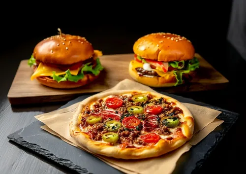 2 фрешбургера + пицца вестерн барбекю 25 см