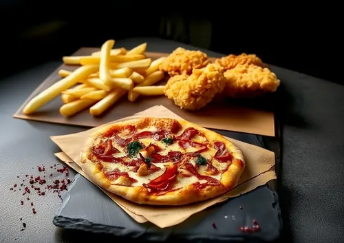 Пицца карбонара 25 см + средняя фри + наггетсы 6 шт.